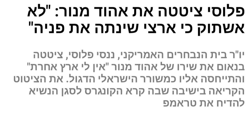בנאום הבכורה שלו הזכיר רון חולדאי את המשפט 'לא אשתוק כי ארצי שינתה את פניה', שכתב אהוד מנור ושרה גלי עטרי. עתה הזכירה את המילים האלה גם ננסי פלוסי, יושבת ראש בית הנבחרים בארה"ב.