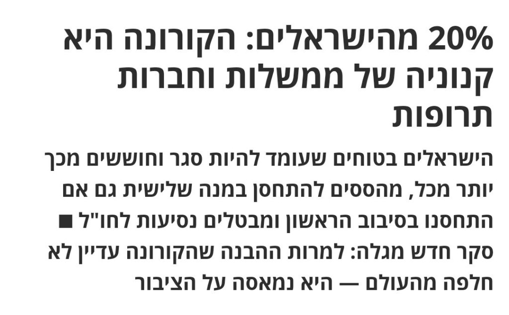 בתמונה – חמישית מישראל אינם מאמינים לממשלה. מתוך הארץ, היום.